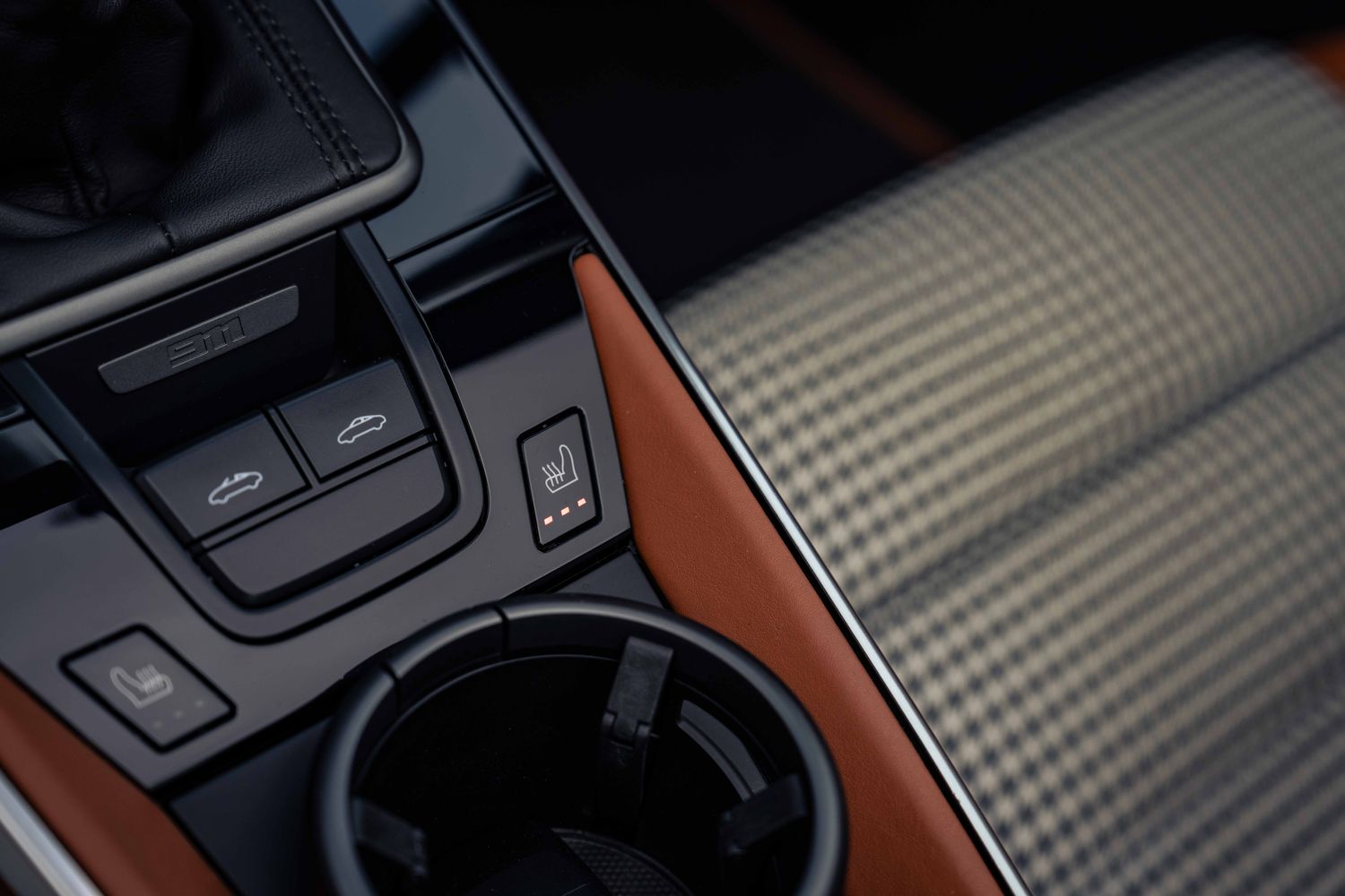 Cupholder trim in leather
